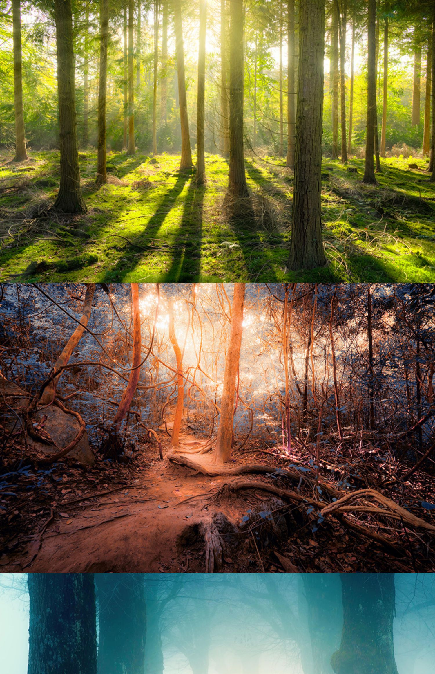 现代简约风景阳光森林树木客厅装饰画摄影画高清画芯素材图片库