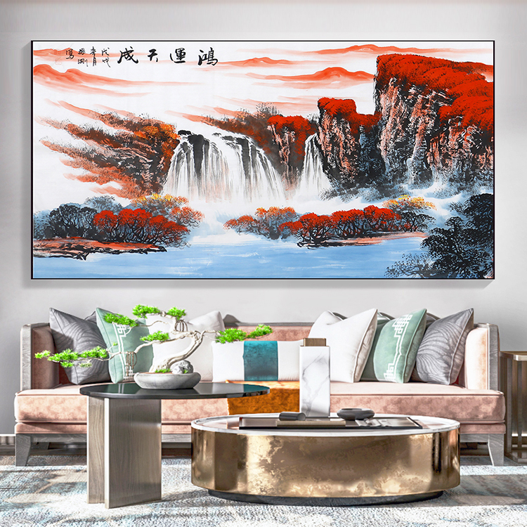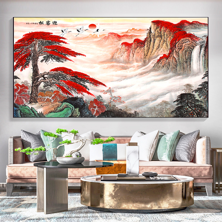 鸿运当头国画山水画风水靠山手绘中式办公室装饰壁画高清素材
