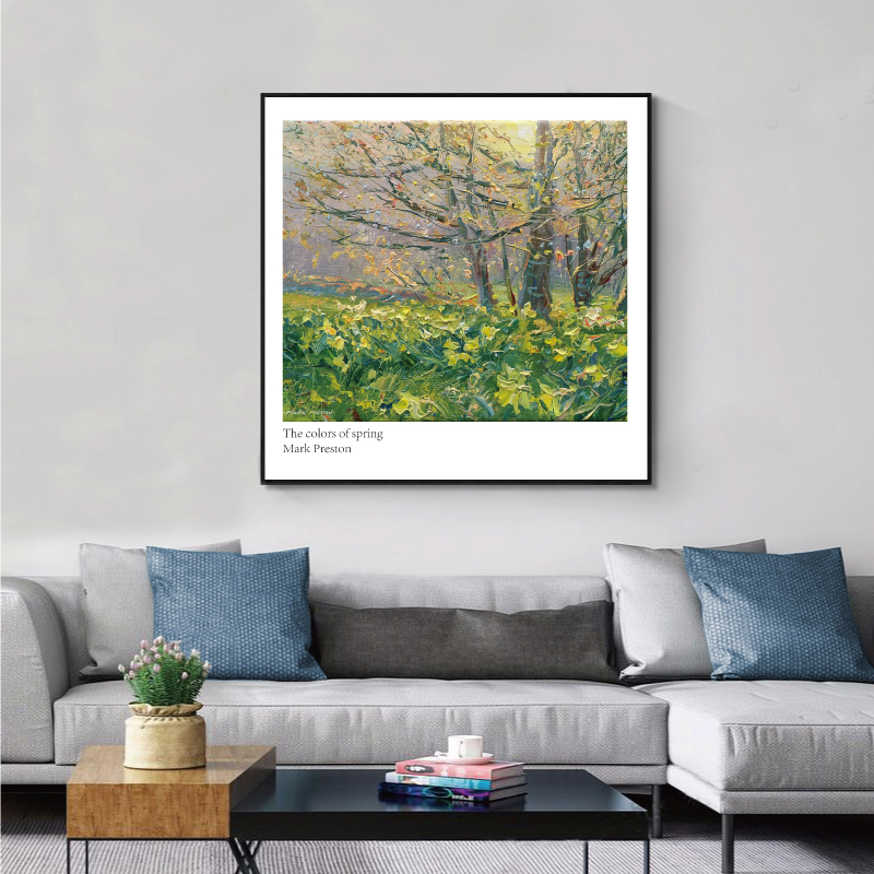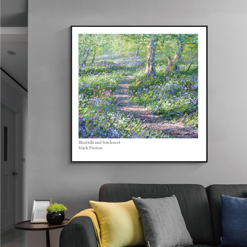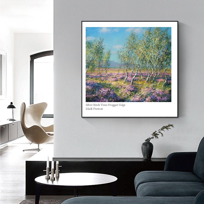 现代简约手绘风景油画 风景装饰画画芯正方形壁画挂画素材