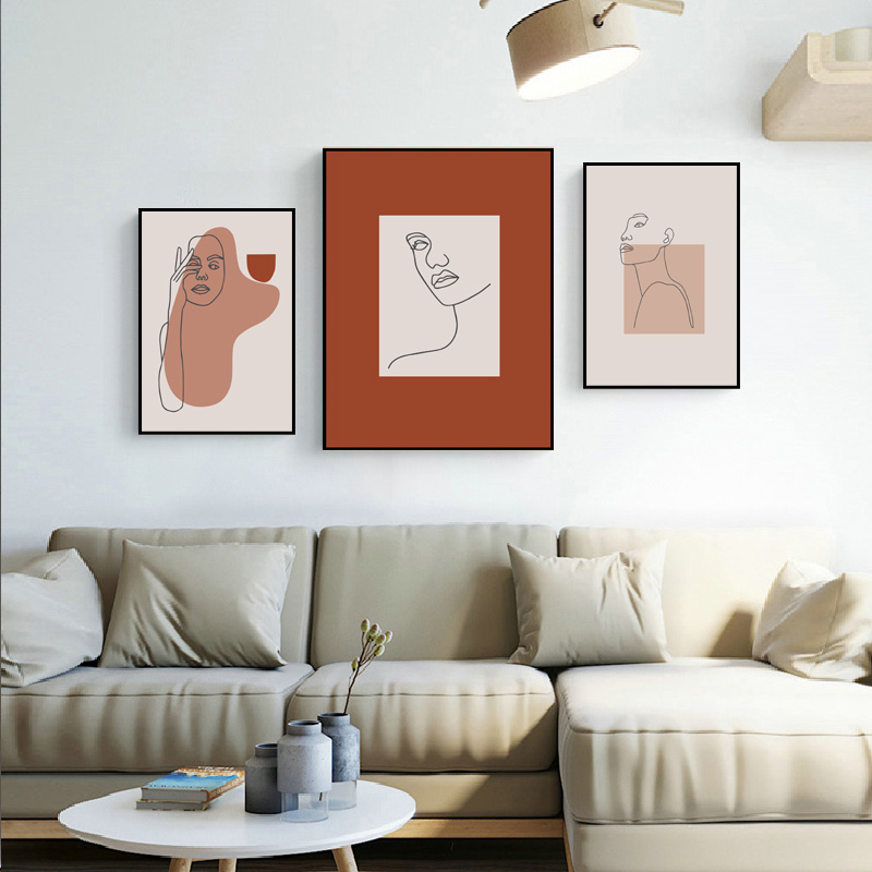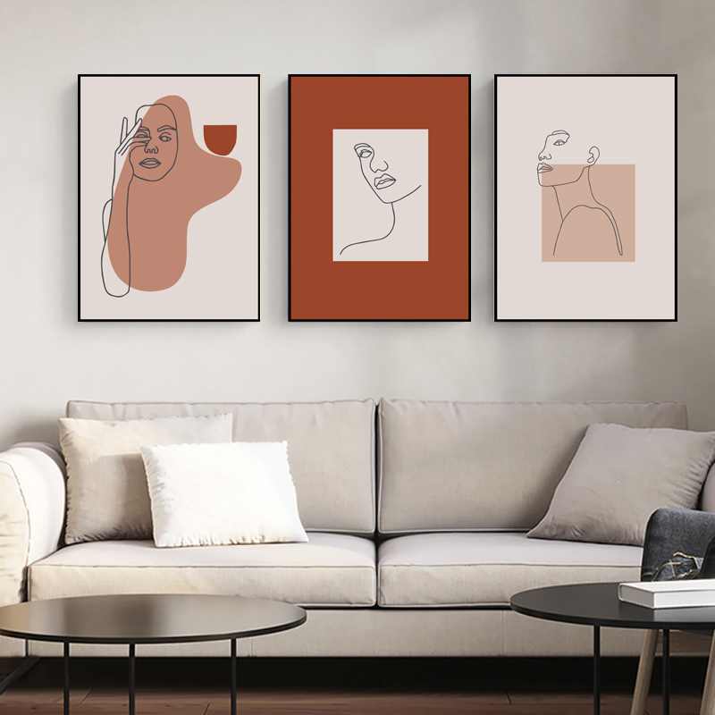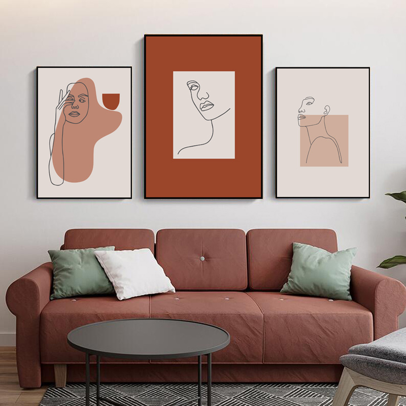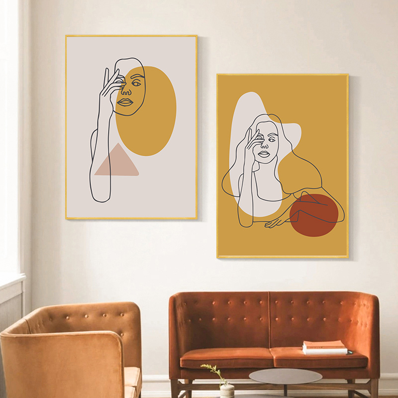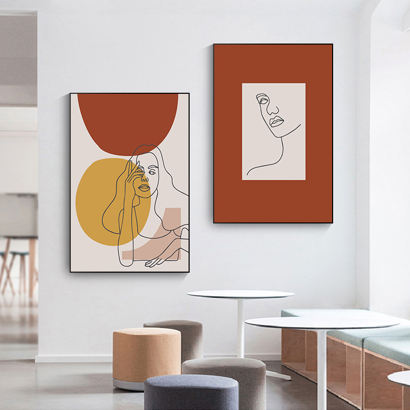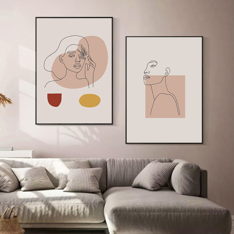 简约北欧小清新莫兰迪色抽象线条人物美女时尚ins装饰画素材