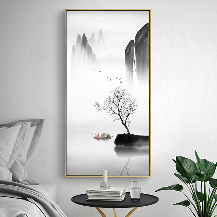 新中式现代手绘水墨禅意山水装饰画素材客厅挂画玄关挂画高清