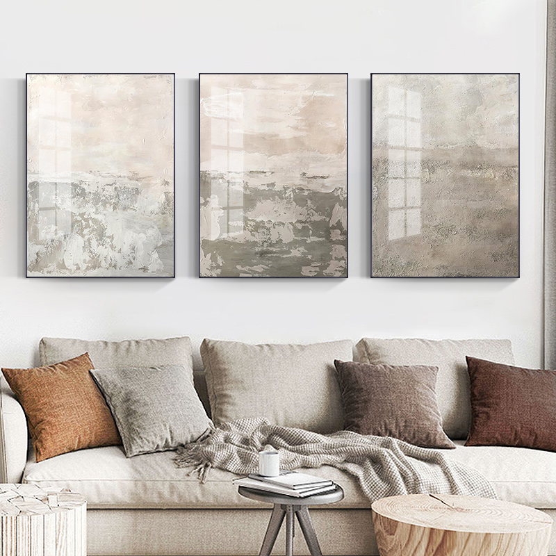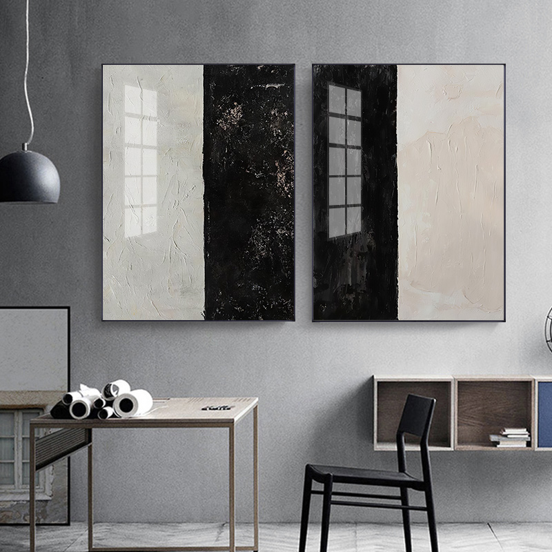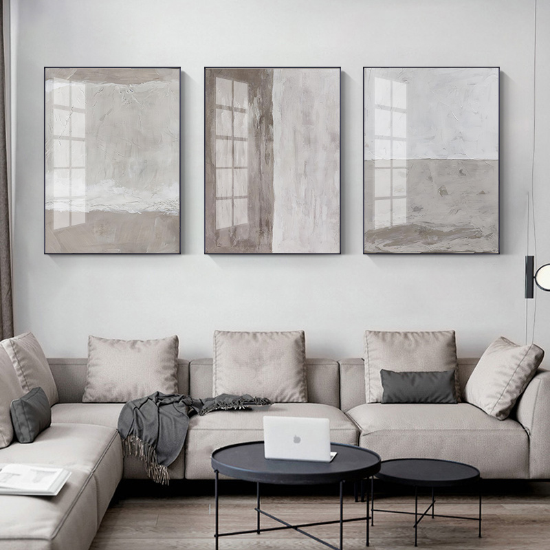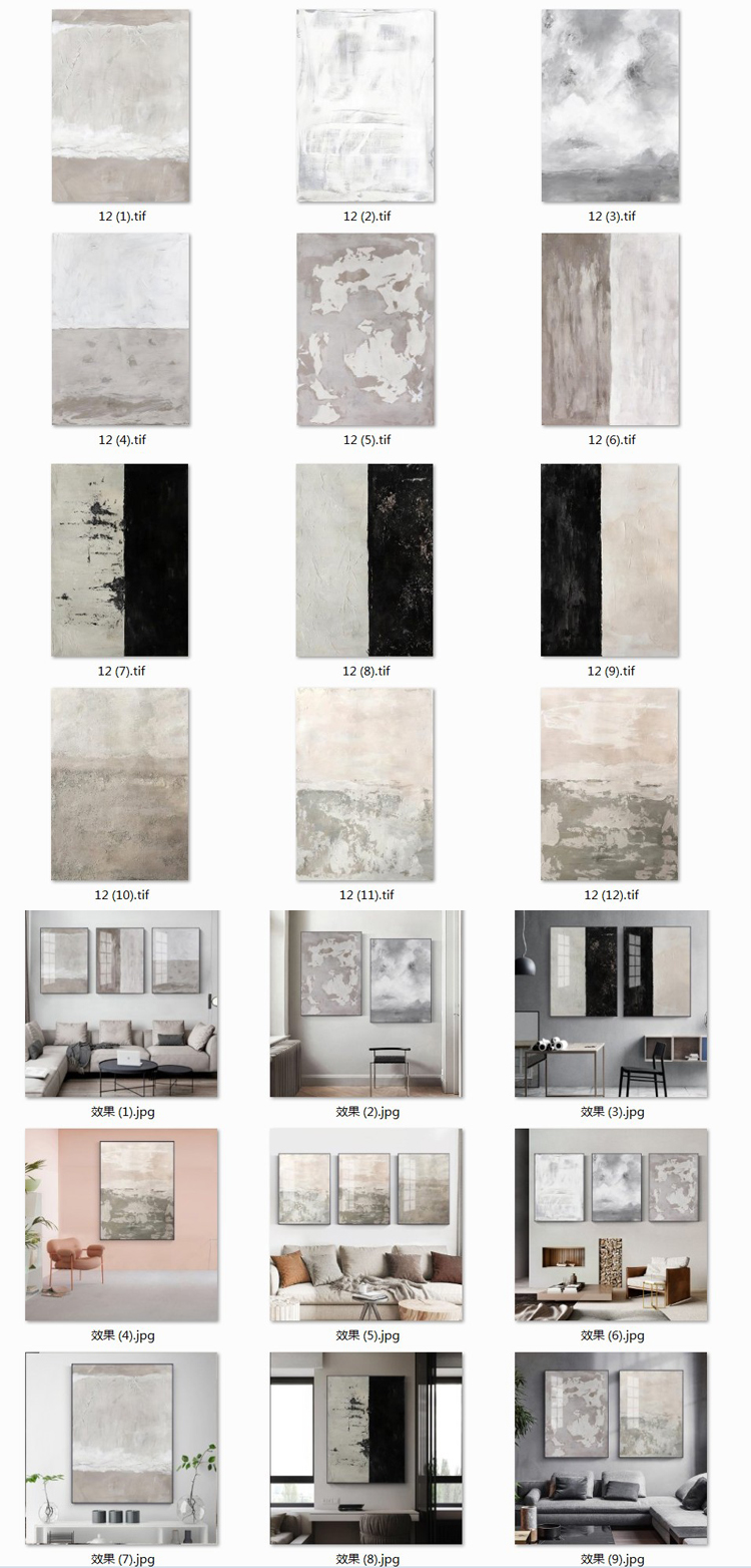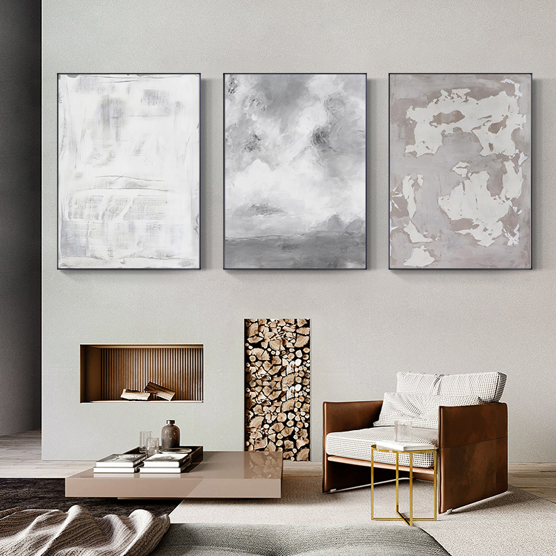 极简肌理抽象手绘油画现代黑白灰北欧风三联画装饰画芯高清素材