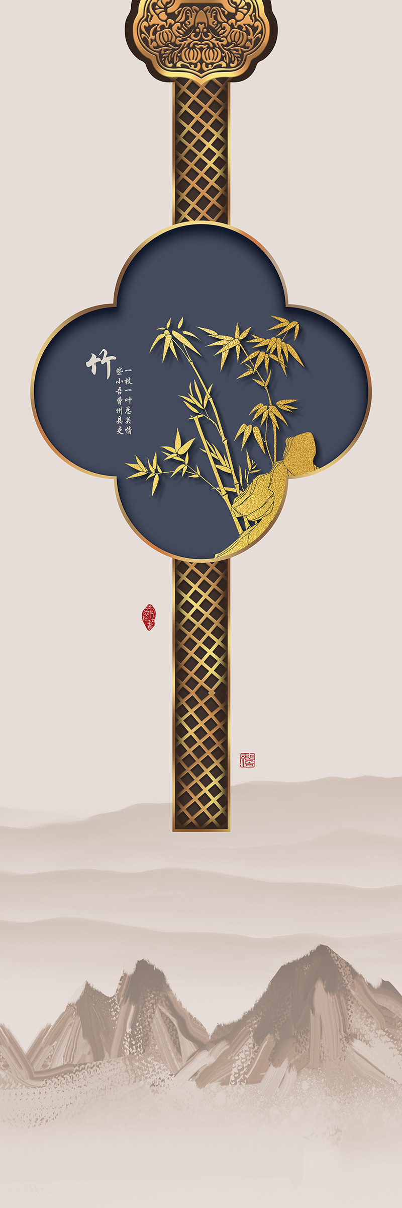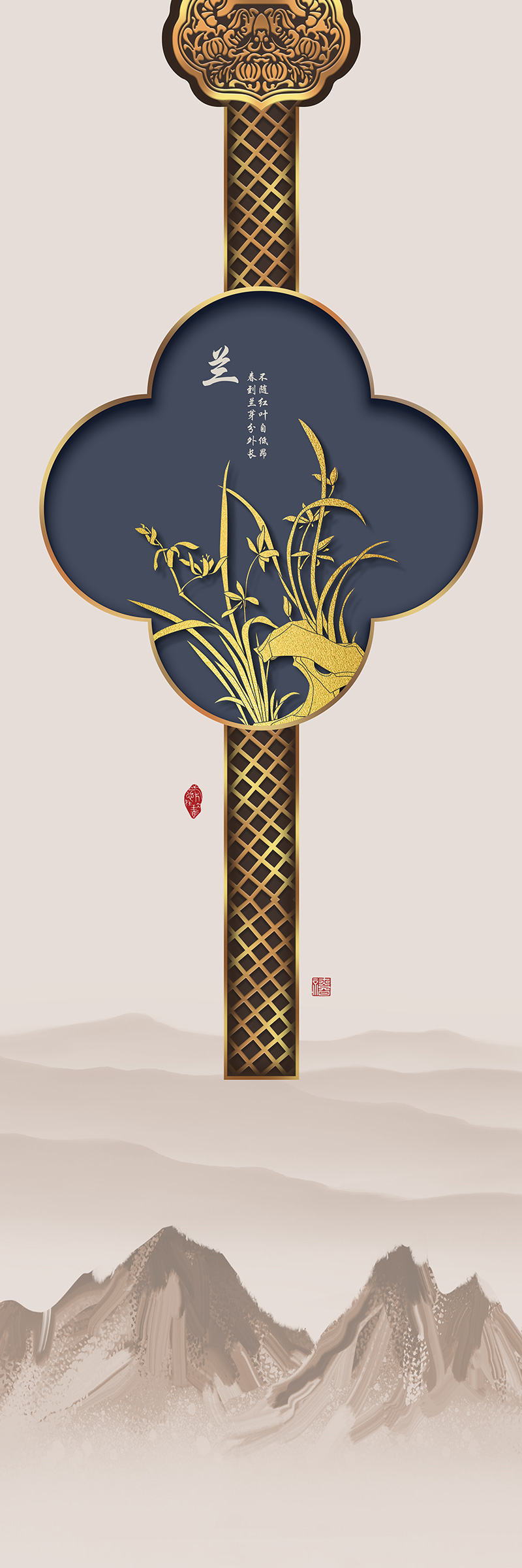 新中式四联画禅意现代轻奢古风玄关梅兰竹菊装饰画高清素材图片库
