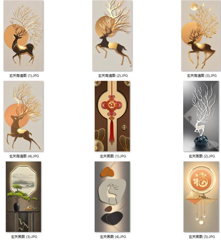 现代轻奢抽象花朵鹿新中式发光玄关背景墙装饰画画芯高清素材图库
