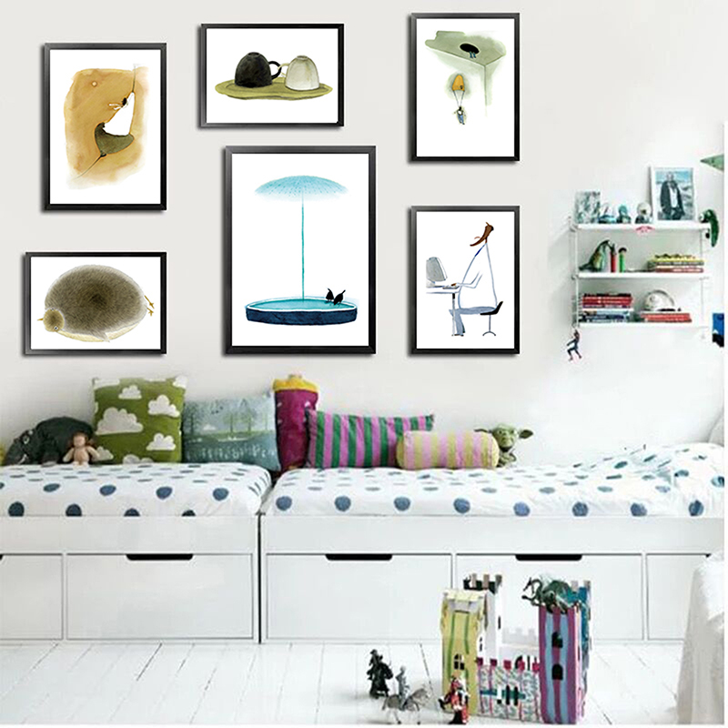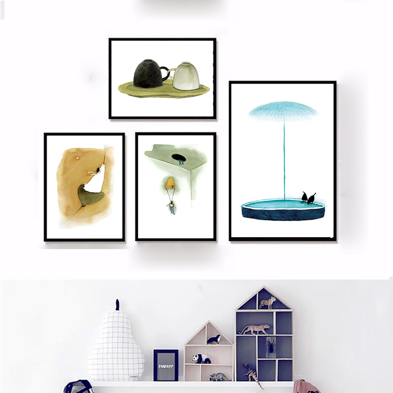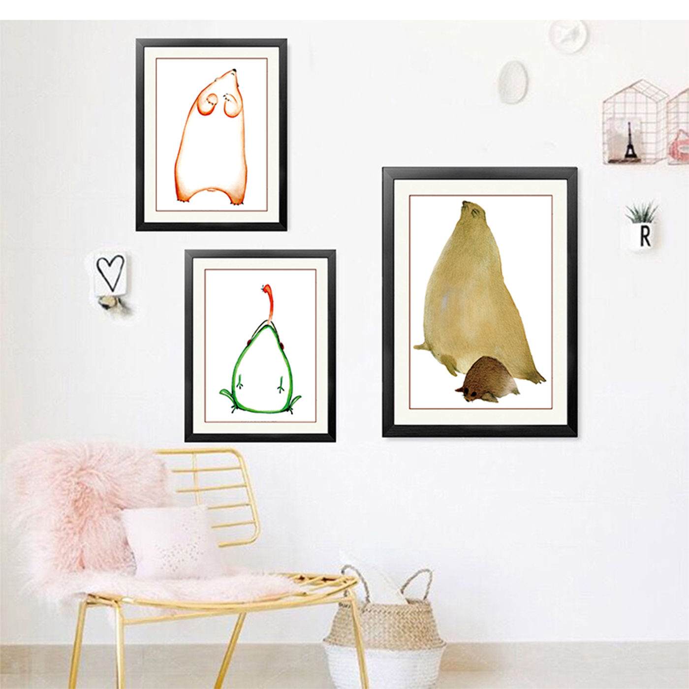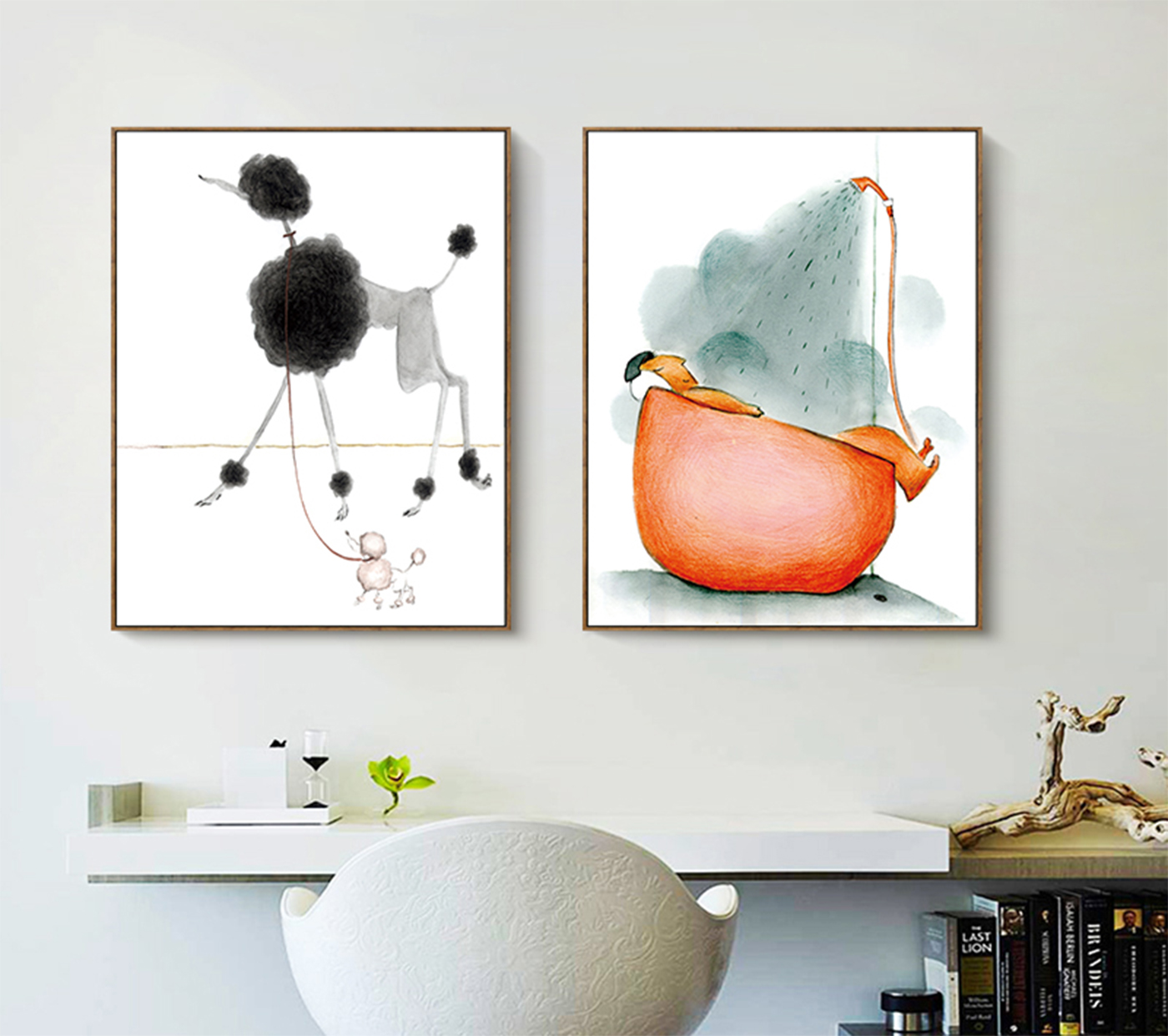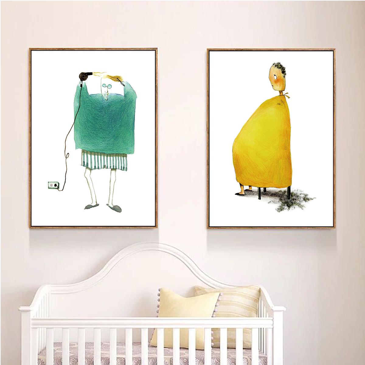 北欧可爱风手绘人物动物插画餐客厅儿童房装饰画素材高清图库