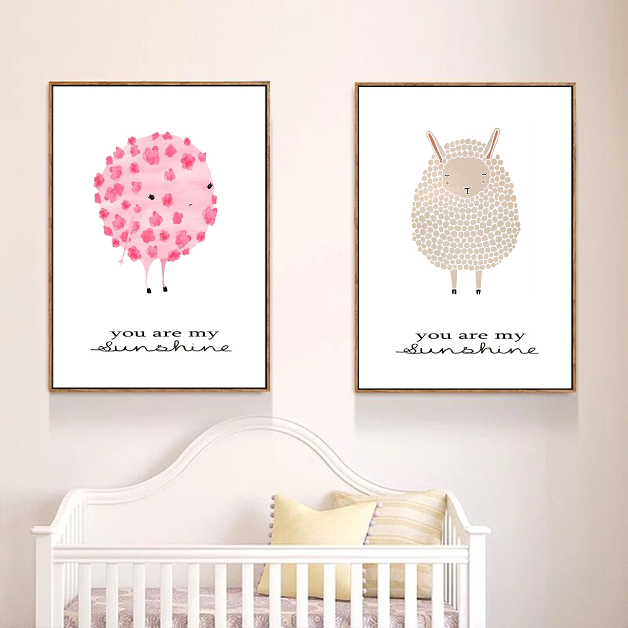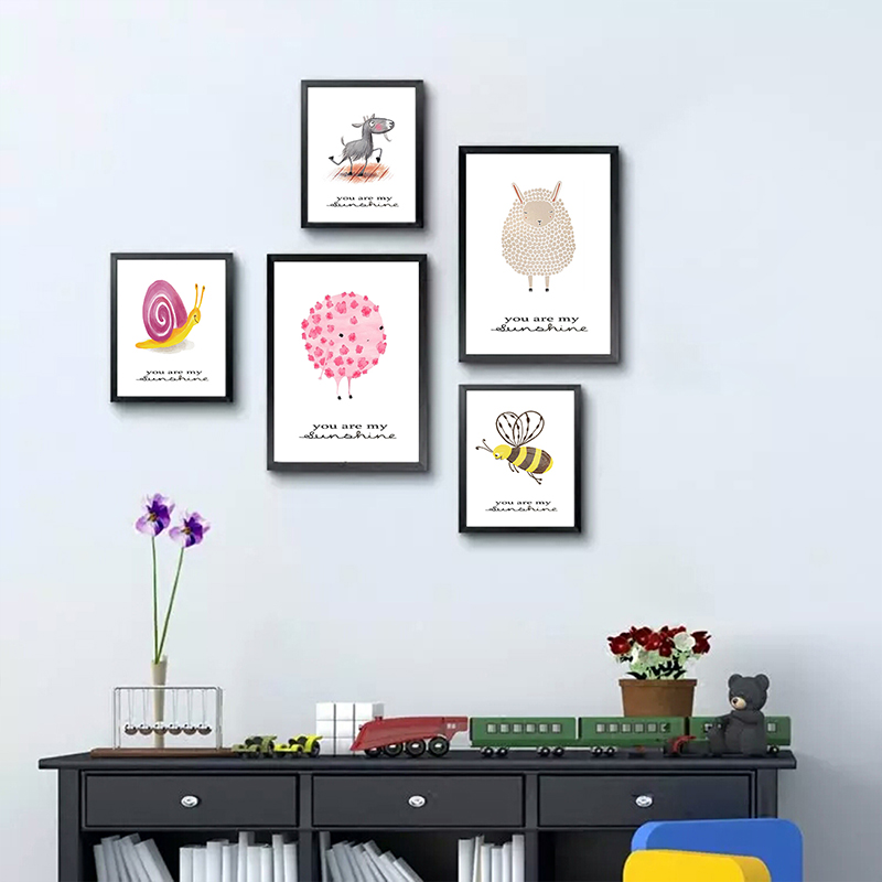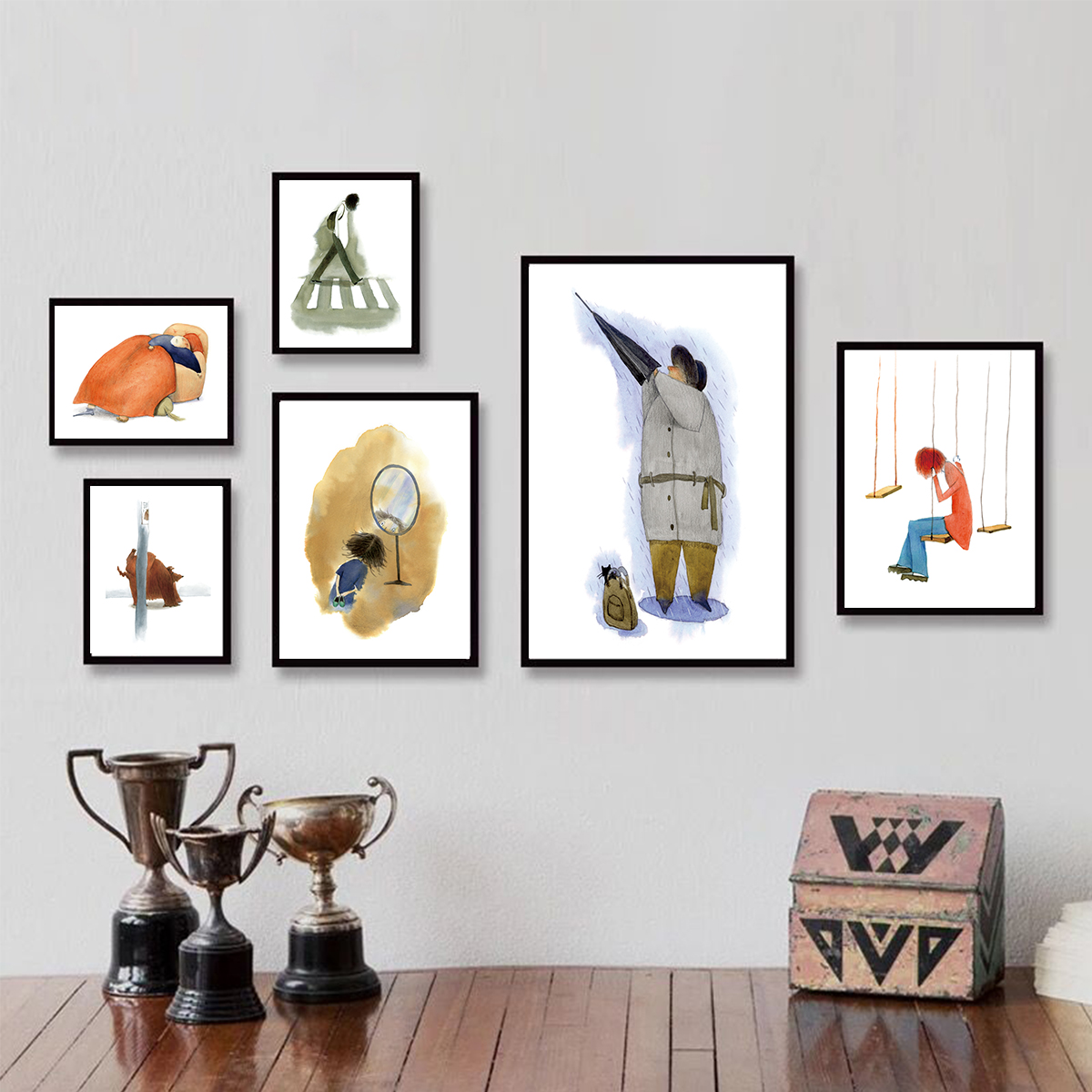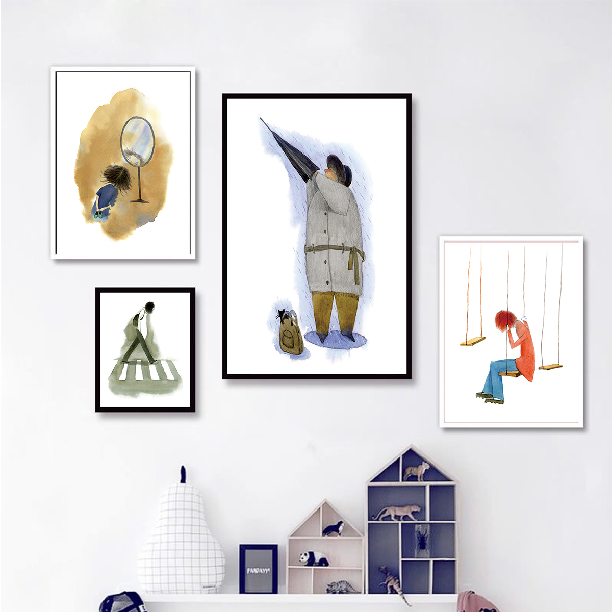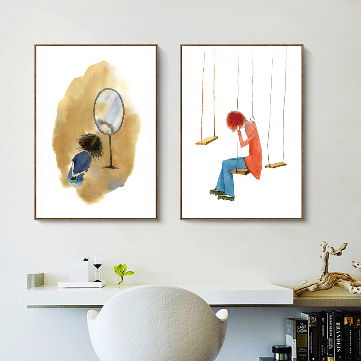 北欧可爱风手绘人物动物插画餐客厅儿童房装饰画素材高清图库