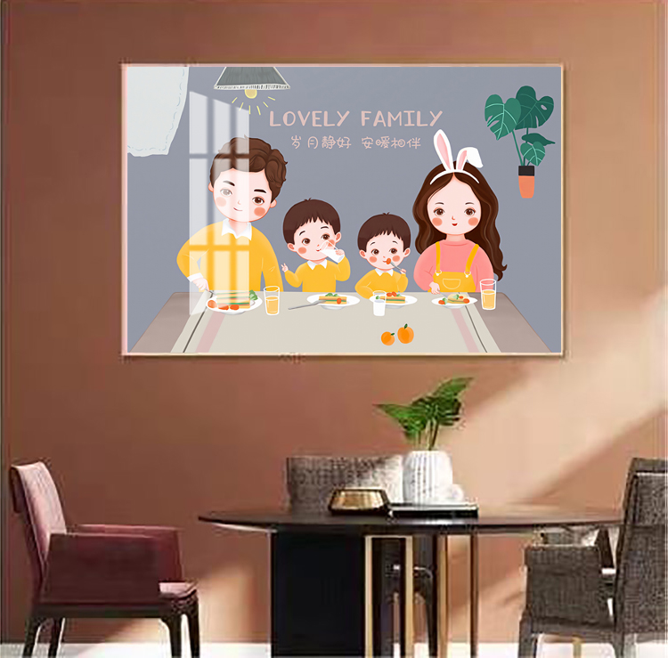 北欧小清新一家人餐厅厨房挂画卡通人物装饰画高清素材图库